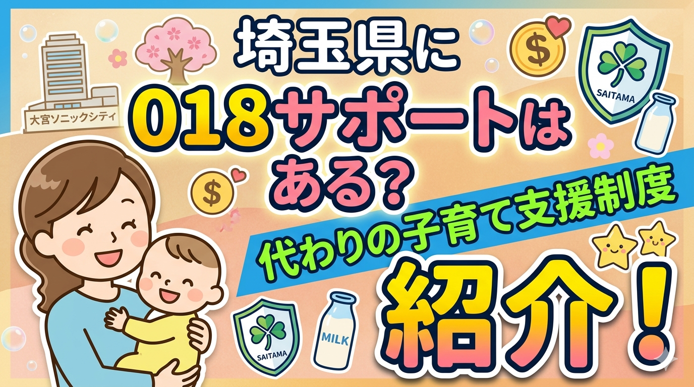 018サポートがもらえないのは残念だけど、埼玉県にも国の児童手当に上乗せできる独自の支援がいくつかあるんだよ。まずは自分が住んでいる市区町村の制度も確認してみてね!