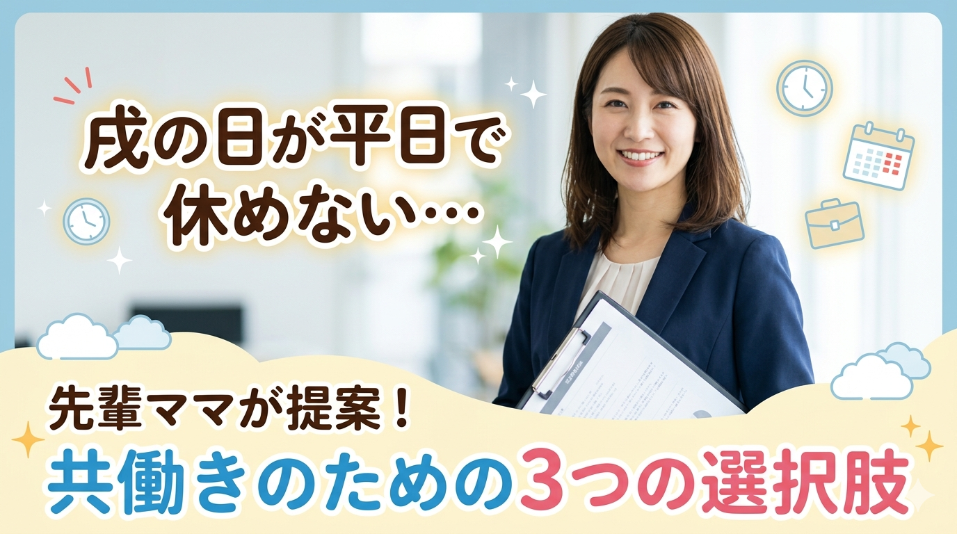 戌の日は12日に1回しかめぐってこないため、平日に当たることは半分以上。同じ状況で悩んだ先輩ママたちが実際にどう乗り越えたか、3つの選択肢にまとめました。