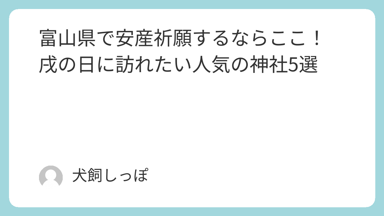 富山は越中国一之宮が複数あるのが特徴だよ。射水神社の子守り福犬は富山ならではの授与品だよ。