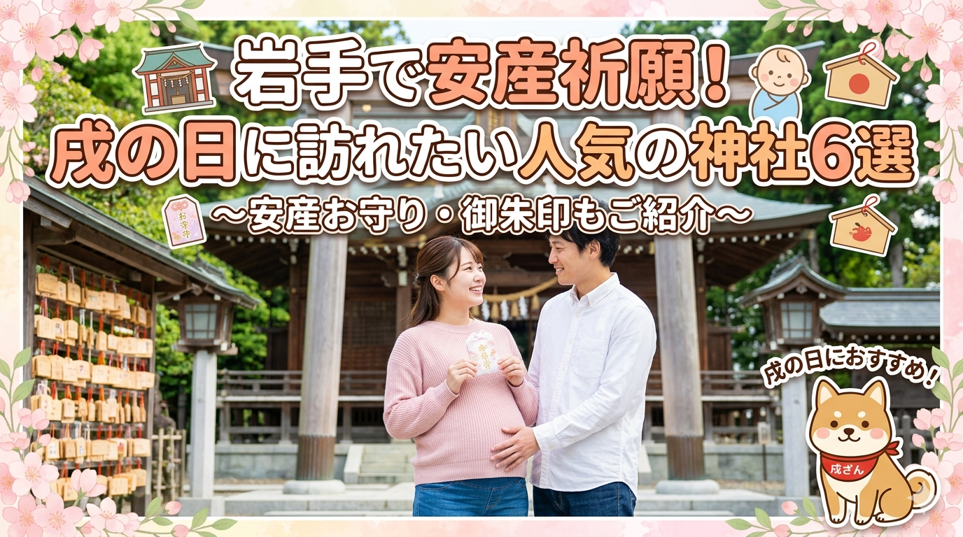 中尊寺・毛越寺という世界遺産の寺院が安産祈願にも対応しているのは岩手ならではだよ。盛岡市内なら盛岡八幡宮や桜山神社が便利だよ。