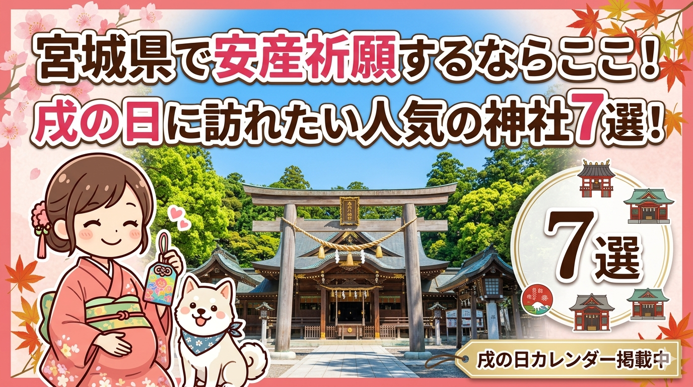 宮城県には、鹽竈神社という陸奥国一之宮をはじめ、大崎八幡宮の国宝社殿、金蛇水神社のパワースポットなど、個性豊かな社が揃っています。仙台市内だけでも複数の安産祈願スポットがあり、アクセス面でも選びやすいのが特徴です。安産祈願で人気の神社・寺院を7社まとめたので、ぜひチェックしてみてください!