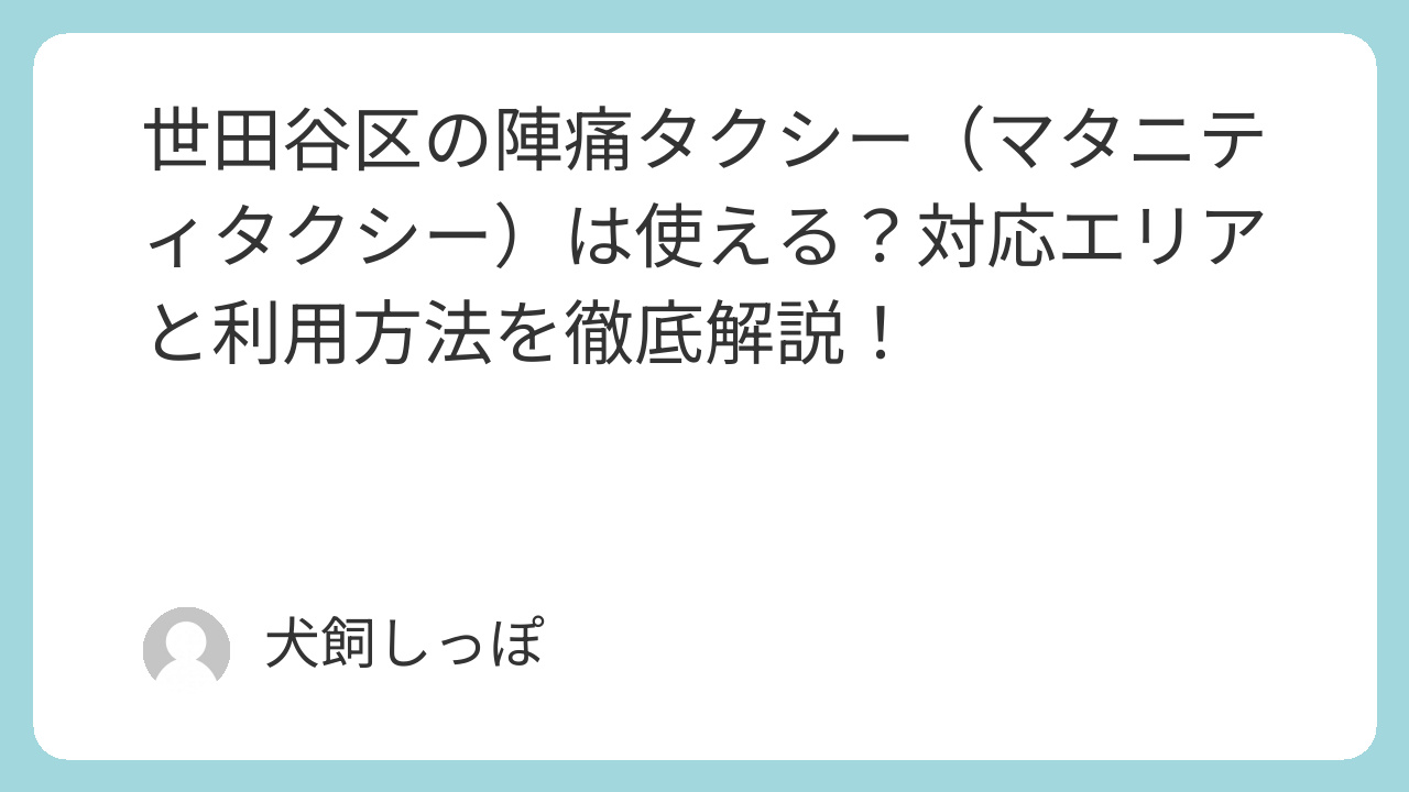 ※本記事の情報は公開時点のものです。各サービスの最新情報は各タクシー会社・世田谷区公式サイトでご確認ください。