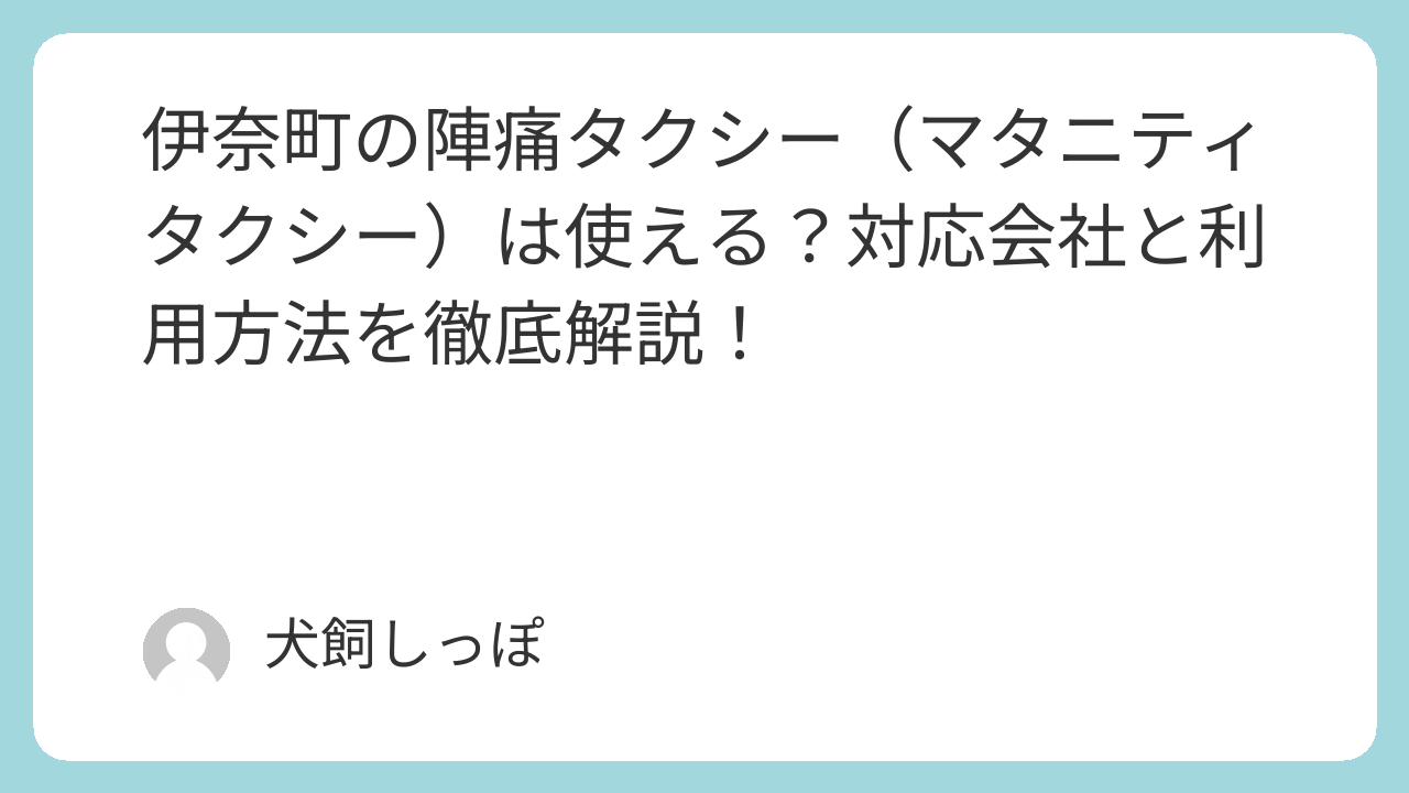 ※本記事の情報は公開時点のものです。各サービスの最新情報は各タクシー会社・伊奈町公式サイトでご確認ください。