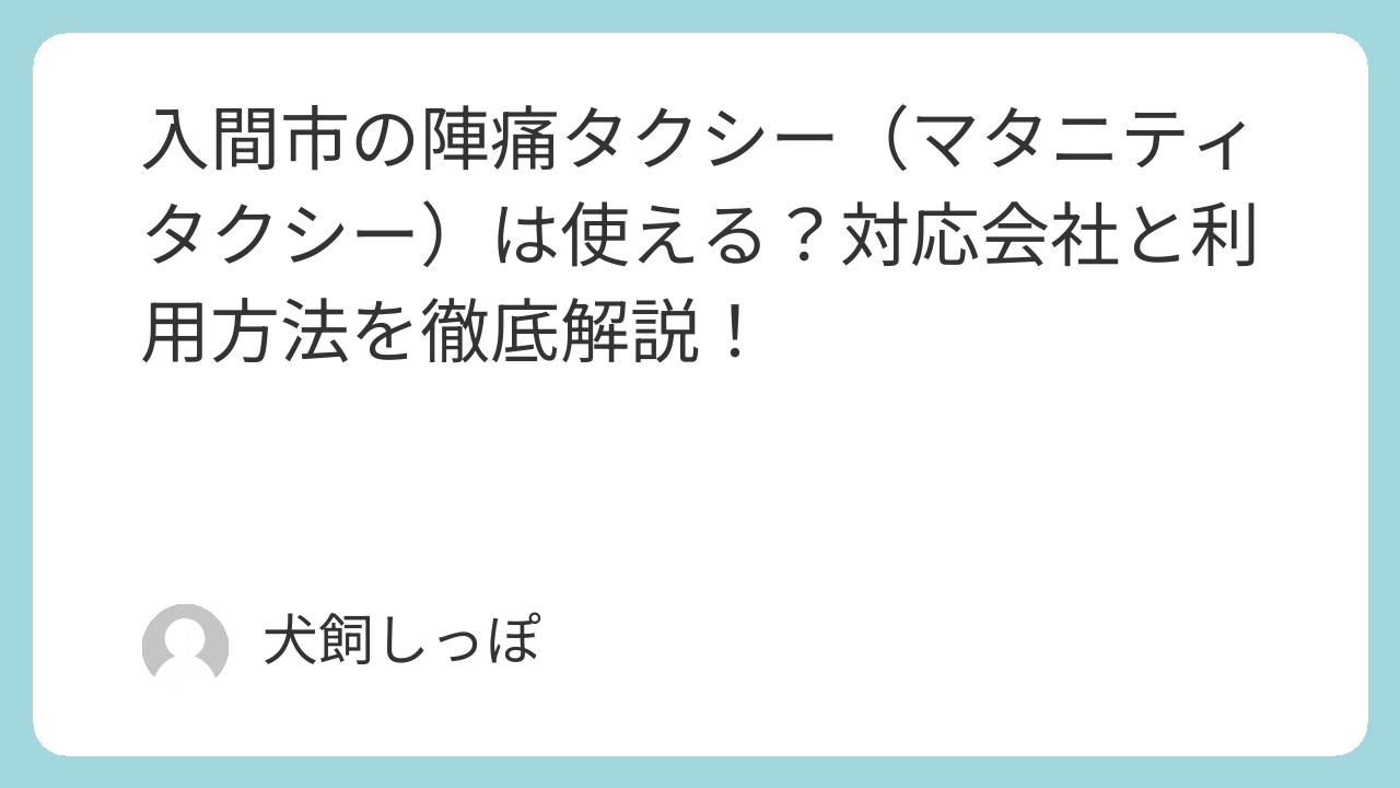※本記事の情報は公開時点のものです。各サービスの最新情報は各タクシー会社・入間市公式サイトでご確認ください。