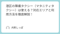 2社が対応しています。できるだけ複数社に登録しておくと、繁忙時間帯でも配車してもらえる可能性が高まります。