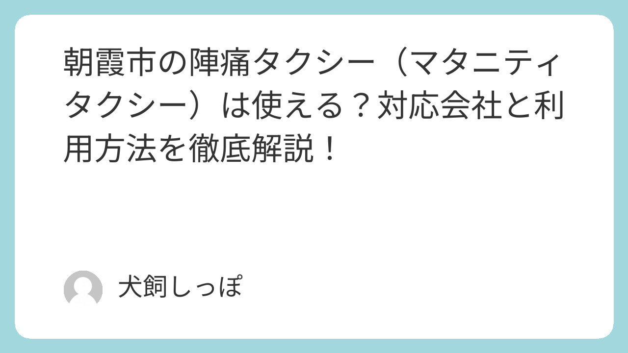 ※本記事の情報は公開時点のものです。各サービスの最新情報は各タクシー会社・朝霞市公式サイトでご確認ください。
